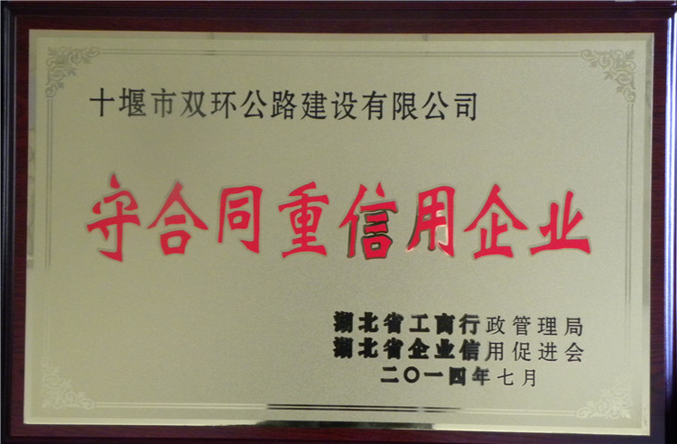 連續(xù)多年評(píng)為“AA級(jí)公路建設(shè)市場信用等級(jí)”,榮獲省交通運(yùn)輸廳“十佳參建單位”“先進(jìn)集體”等稱號(hào),中共十堰市委、市政府“最佳文明單位”“先進(jìn)組織”,省公路局“全省公路交流廉政文化建設(shè)示范單位”,省和市工商局“守合同重信用企業(yè)”等多個(gè)榮譽(yù)稱號(hào)。
